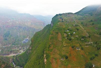 从天梯爬上悬崖后,眼前豁然开朗,开阔的缓坡地带上,民房散落着。虽然地处悬崖上,但这里海拔仅有1500米左右,与西昌市的高度差不多。