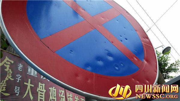 被打的路牌 周边多家店铺半年内同被袭 据记者了解,除了手机店玻璃被射中外,相邻的几家服装店、小吃店也有殃及。在一家男装店,店铺大门的玻璃上还留有两处明显的痕迹。店员介绍,这两处痕迹是在一个月前被射中的,幸好发生在晚上,没有打到人。 而另一家女装店“受伤”就严重了,据店员介绍,从今年年初开始店门口的玻璃就不断在晚上受创,打的玻璃上“伤痕累累”。“到最后玻璃上有几十个坑洞,我们还捡到很多的小钢珠,才怀疑可能是被钢珠气枪、弹弓之类的东西打的。”一位店员告诉记者。 离男装店不远的一家小吃店,卷帘门上也有不少类似痕迹。小吃店门口的一处铁质路牌和警示牌,被打得坑洼密密麻麻。据店家介绍,他家店子从3月开始就不断遭遇袭击,捡到了很多小钢珠并交给了警察,还丢掉了一些。