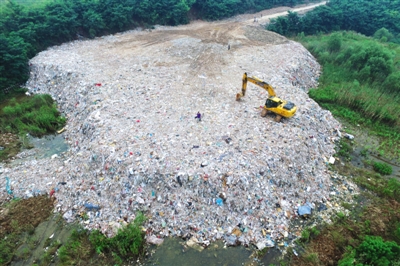 去年5月,无锡惠山区洛社镇发现当地被人掩埋上千吨生活垃圾,经调查来源是从上海用船偷运而来。