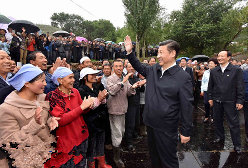 7月18日至20日,中共中央总书记、国家主席、中央军委主席习近平在宁夏调研考察。这是7月18日下午,习近平在固原市泾源县大湾乡杨岭村考察时向村民们问好。新华社记者李涛摄