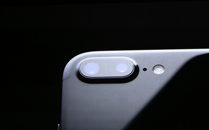 AirPods无线耳机 另外,苹果还带来了一款无线耳机AirPods,售价1288元,采用W1芯片,内置麦克风,它的大小如同普通没有线的苹果耳机。支持5小时续航,双击耳机开启Siri,充电盒支持24小时续航,只需要打开就可以让iPhone自动识别,对Apple Watch等产品也都支持。 值得一提的是,你可以带着iPhone 7/7 Plus洗澡了,因为它支持IP67级别的防水防尘。 7 Plus后置双摄 广角+2倍光学变焦 库克在发布会上说:“It is the best iPhone!”称iPhone 7 Plus上的相机是有史以来手机中最好的相机。