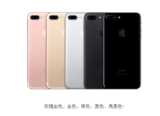 5种配色 除了iPhone 6S/6S Plus也有的金、银、玫瑰金,这次的iPhone 7/7 Plus还新增了普通黑色和亮面的钢琴黑配色,之前传得沸沸扬扬的海军蓝并没有。