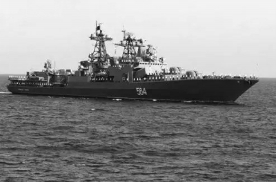 “特里布茨”海军中将号(564) “特里布茨”海军中将号(564) 无畏级导弹驱逐舰,舷号564,满载排水量7480吨,舰长163.5米,舰宽19.3米,最大航速30节,续航力5700海里,编制人数300多人,可搭载2架卡型舰载直升机。该舰配有反潜导弹、防空导弹,2座100毫米单管舰炮,4座30毫米六管舰炮,以及鱼雷、反潜火箭和火箭深弹发射装置,可为舰艇编队提供反潜护卫,该舰于上世纪80年代服役。