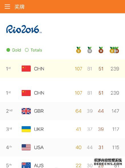 里约残奥会奖牌榜 |