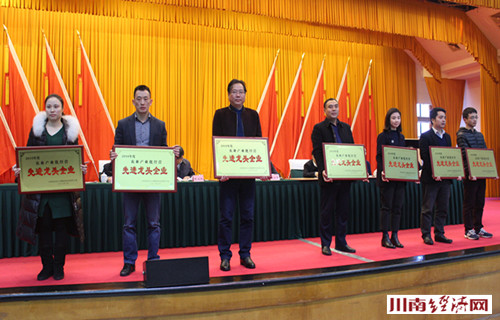 工作会还向全市20个“三农”工作先进乡镇、20个先进龙头企业、30个先进农民合作组织和20个先进家庭农场给予授牌和颁奖。纳溪区委、区政府、合江县委、县政府、江阳区分水岭镇、叙永县水尾镇、龙马潭区安宁街道阳高村、泸县巨星旺农牧科技有限公司、古蔺县青龙桑蚕专业合作社等作大会交流发言。副市长熊启权代表市政府与各区县签订2017年度农业农村、脱贫攻坚工作目标责任书。泸州市委常委、市农工委主任张文军作总结讲话,他充分肯定了过去一年的成绩,希望各级各部门,围绕发展主线,抓实各项农村工作,深化精准扶贫,加快补齐农业农村发展短板,打开思路,开阔眼界,练好内功,守住底线,树好形象,加大纪检监察力度,坚决纠正和查处损害农民群众切身利益的违纪违法行为。