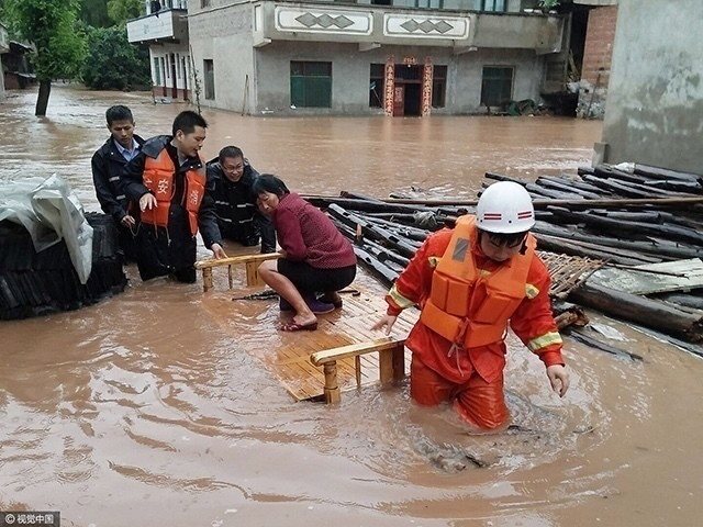 在受灾较为严重的广安市广安区花桥政府水码头、古今村、中心幼儿园、岩石街等地,在最高水位达两米的情况下,消防官兵历经7个小时的抢险救援,紧急转移被困群众86名。