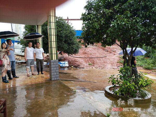 岳塘街道、社区、湘钢相关负责人查看受灾情况。
