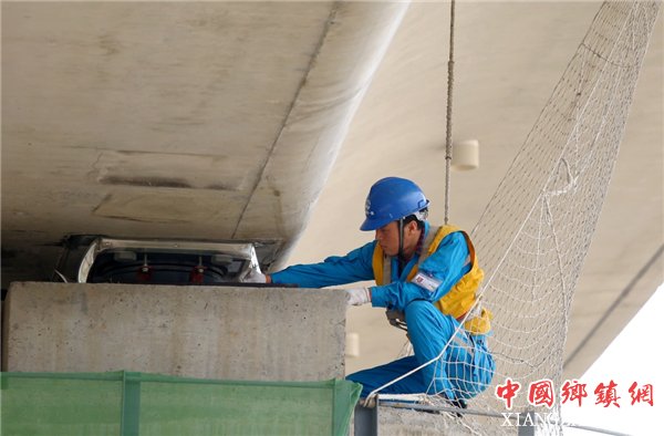 中铁一局的工作人员在施工现场指挥箱梁架设(2016年5月30日摄)。新华社记者 李一博 摄