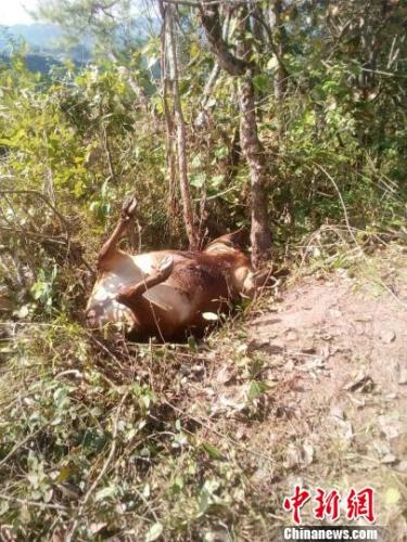 图为张祖培家被野象“杀死”的黄牛。 张祖培 摄