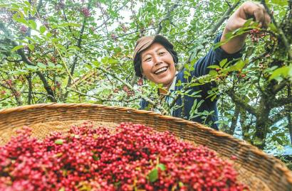 美姑县农作乡把发展优质花椒生产作为脱贫产业之一,当地村民种植的“大红袍”花椒喜获丰收。