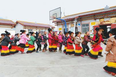 2月5日,在越西县大花乡瓦尔村幼教点,孩子们正在玩游戏。提及幼教点,当地彝族群众连称“瓦吉瓦”(好)。凉山州已开办村级幼教点3038个,开设班级3900个,招收幼儿11.64万人。