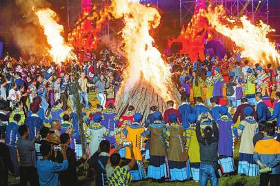 大批游客与彝族同胞在布拖县共同欢度火把节。