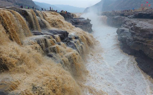 日前,受黄河上游融冰开河影响,位于山西吉县和陕西宜川县交界的黄河壶口瀑布迎来“桃花汛”,水量骤增,景观壮美。