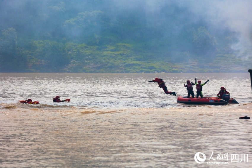 人民网成都6月14日电 冲锋舟一往无前、无人机定位精准、应急力量密切协作……近日,四川省消防救援总队在广安市举行抗洪抢险拉动演练。演练模拟渠江流域出现特大洪水,引发大量房屋、农田被淹、人员被困等险情,同时省内多个流域大面积突发暴雨,四川省消防救援总队调集遂宁、南充、宜宾、达州消防救援支队水域救援专业队赶赴现场开展救援。 在无人机侦察、被困人员转移、地质灾害点绳索救援等科目中,4架无人机进行侦察搜救,发现牛角村因暴雨滑坡,20余人被困家中,3人重伤无法行动,急需转移;江中,6艘冲锋舟灵活绕过障碍物,冲向对岸转移被困群众;河对岸,一组救援队伍携带绳索救援装备赶赴人员被困处,另一组搭建150米长、60米高的空中绳桥,将无法行动的被困人员安全转移上船…… 在船舶火灾事故救援科目中,河中一运输船由于河水湍急,发生爆炸,部分人员受伤掉入水中。情况紧急,救援人员采用无人机定点抛投救生圈和救生衣、水上机器人遥控救助、驾驶橡皮艇前往等方式,成功救助落水人员。与此同时,2架无人机搭载干粉和泡沫灭火药剂进行灭火,川海巡救助2号以及4艘救援艇搭载机动泵出水,在火势彻底熄灭后,对事故船舶进行转移。 在失控船舶处置科目中,上游一失控船舶顺流而下,对转移船舶、下游桥梁、大坝及河道安全性造成严重威胁。经指挥部研判,决定对失控船只进行规范处置,2艘救援艇协助专业人员安装炸药,确定所有人员撤离至安全区域后,进行爆破。“起爆!”现场指挥员一声令下,失控船舶上冒出一朵朵“蘑菇云”。之后,随着船体缓缓下沉,危险解除。 经过连续1个多小时的奋战,参演人员顺利完成无人机侦察、被困人员转移、地质灾害点绳索救援、龙门吊救援、落水车辆事故救援、船舶火灾事故救援、失控客运船救援、拦截脱离油罐、失控船舶处置、城市排涝10个演练科目。 “此次演练内容丰富、涵盖面广,不仅提升了防汛抢险救援的技战术水平,也检验了我们在水域救援的实战能力,为今后完成各项防汛抢险救援任务打下了坚实基础。”广安市消防救援支队朝阳大道特勤站副站长唐雷表示。