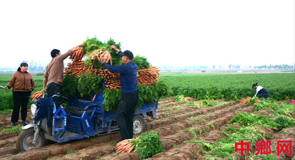 11月4日,河南省内黄县马上乡小黄滩村张俊正在萝卜种植基地组织钟点工拔胡萝卜、白萝卜和装车。近年来,该乡党委坚持党建为引领,创新探索“党支部+合作社+农户”的发展模式,推动大棚蔬菜瓜果和露地蔬菜产业向规模化、标准化、品牌化方向发展。当地通过引进甜瓜、黄瓜、西红柿等抗病性强、高产、优质的蔬菜新品种,同时大力推广套水肥一体化系统以及绿色生态种植模式,实现节本、增效、提质显著提升了蔬菜的产量和品质。让“内黄马上蔬菜”逐渐成为一张闪亮的名片。“近年来,马上乡大力推广温室大棚瓜菜和露地蔬菜种植,把高效农业作为经济发展主导产业来抓,以产业兴带动农民富。目前,全乡温室大棚瓜菜种植面积和露地蔬菜种植面积5万余亩,瓜果种植专业合作社达48家,年产各类瓜菜24万吨,年创效益5亿元。助力乡村振兴。”马上乡党委书记魏坤自豪地说。(图文来源:河南省内黄县县委组织部办公室 翟书生王军艳)