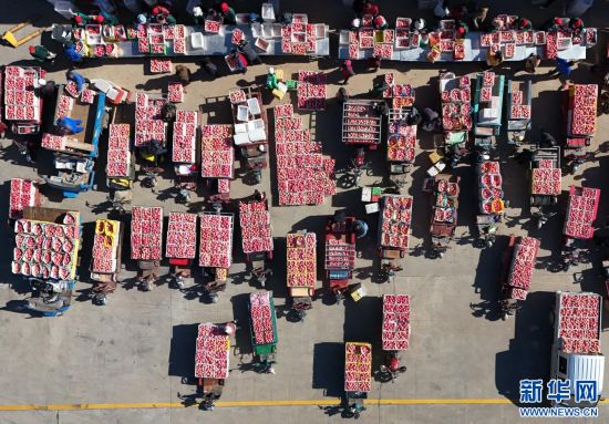 10月20日,果农在延安市洛川县一家果业企业售卖苹果(无人机照片)。 (编辑:晓东 责编:祁旭) |