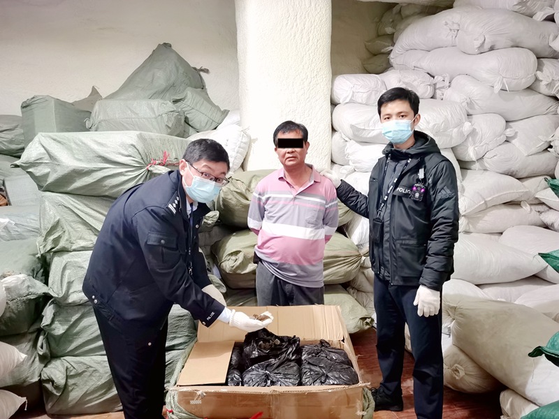 人民网玉林7月8日电 近日,广西贵港海关缉私分局开展“守护者2021”打击濒危物种走私专项行动,在广西玉林成功打掉濒危物种走私团伙1个,端掉濒危物种囤积窝点2个,抓获犯罪嫌疑人2名,现场查获涉嫌走私的穿山甲鳞片2245.995千克、穿山甲爪子2.093千克。