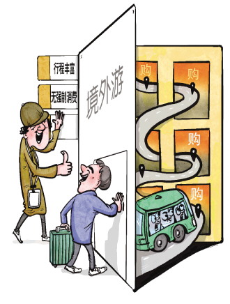 漫画/高岳 “没说‘不交费会打死您之前’请安静。”近日,一则泰国导游疑强制要求中国游客购买原定行程中没有的自费项目的视频引发社会关注。不少网友吐槽称:想走就走的出境跟团游没有那么简单。 随着商务旅行、探亲访友、毕业旅行、暑期研学游等出境旅游需求不断释放,近年来出境游人数逐渐增多。国家统计局公布的数据显示,今年上半年全国居民出境旅游人数达1.09亿人次,同比增长4.4%。 然而,《法治日报》记者采访发现,一些游客在出境跟团游过程中遭遇“人在囧途”,权益受损的同时面临维权难的尴尬。那么出境跟团游到底存在哪些“坑”,又该如何避“坑”? 游客花钱买罪受 被轰进商店购物 经历过一次体验感极差的出境跟团游后,家住浙江省嘉兴市的林巴决定以后出去都选择自由行。今年五一假期,林巴和家人在旅游App上报团参加了泰国5天4晚游,“当时想着第一次去国外,还是报团比较放心,而且旅行社提供的旅游产品和价格都比较合适,参团后交通、住宿等也会比较省心”。 根据旅行社提供的信息,这趟旅程包括两个购物点,行程丰富,且承诺无任何强制消费,可到达当地后,地接社变相强迫消费和购物让林巴十分无奈。 “刚下完单,导游发来的购物点就变成了3个。”林巴说,“凌晨1点到了曼谷后开始收落地签和快速通道费用,但并没有让我们快速通过,出机场已经快凌晨3点。一上大巴车,中国导游就要求给他和泰国助理、司机小费,并提醒我们每天住的酒店也要准备小费。10分钟路程,司机开了40分钟。” 这还只是开始。第二天从酒店出来,林巴一家并没有如愿前往旅游景点,而是先坐了一个半小时车来到珠宝购物中心,导游全程介绍各种宝石。在购物中心,林巴看到那里停着多辆载有中国游客的大巴车,团里没有兴趣进门逛宝石的游客会被导游“轰”进去。两个小时后,只剩下林巴一个团,因为他们团里没有人买宝石。 “这时导游开始PUA我们,说那么多旅行团就我们买得最少,很丢他的面子。另一位女地接又带我们去了行程中没有的鳄鱼皮制品店,团里有两个人买了两条皮带后,导游脸色才好看一些。我们团到得最早走得最晚,就是因为没人买东西。”林巴说。 当天下午,导游又带着林巴一行去毒蛇研究中心看毒蛇,里面卖的药最低也要1000元人民币,团里几位老年人买了,因此下午的行程结束得很早。“旅行第一天就是购物,没看到任何景点。”林巴说。 次日下午,大巴车开往芭堤雅,预计游玩两天。去的路上,导游安排好了这两天的行程:先去看人妖秀,每人600元人民币;再去东方公主号参观,每人500元人民币;然后吃燕窝,每人300元人民币。“导游让车上的人填单子报名参加,结果没有人报名又把单子传回去了,导游就开始阴阳怪气地说话,很难听。到了芭堤雅的酒店,已经是晚上10点。”林巴回忆道。 面对记者为何不维权的疑问,林巴直言:语言不通、周期太长、流程烦琐、维权成本高。 一些受访游客说,自己经历的出境跟团游几乎都会安排有购物点。曾赴日本、韩国等地跟团游的湖南长沙人赵敏说,尤其在热门目的地,跟团游购物是必备环节,“虽然当地的免税商品价格相对低廉,但无法辨别真假”。 记者采访发现,除强制购物外,近年来出境跟团游暴露出的问题不在少数。 今年7月初,安徽合肥人吴强报名参加了一个法国、意大利、瑞士三国跟团游,所住酒店周边10公里连个餐厅都找不到。旅程中,日均坐车500公里,而且大巴车开两小时休息半小时,限速100公里/时,“因此我们每天的行程就是早上七八点出发,每天七八个小时坐在车上,吃饭基本在高速服务区解决。安排的大巴车又老又破,轮胎磨得纹路都没了,还有各种自费增项”。 如果游客不买会怎么样?吴强告诉记者,在意大利,由于他没有参加自费项目,也没有去红酒店、香水店消费,被导游“扔”在距离某景点几公里外还未开业的商店几个小时。他想要投诉,却发现这家旅行社没有官网、没有公众号,也没有客服电话。 江苏常熟人李凯则在出境跟团游时遭遇了“二道贩子”。此前,他在旅游App下单了一次日本精品小团舒适游,付款前他多次询问整个团有多少人,客服每次回答都是15人内;付款后,他被告知“加入的是当地拼团游”,人多时每天有20多人,几乎每天都在拼团,导游和司机换来换去,具体行程也要到出发前一天才会得知。 李凯后来才知道,自己是被“卖”了:花钱买的不是一个旅游团,而是一个“二道贩子”将自己转手卖给了当地旅行社,对方每天报名参加不同的当地一日游。 北京天驰君泰律师事务所高级合伙人、北京法学会旅游法研究会理事董媛媛说,针对“二道贩子”问题,事实上,法律法规并不禁止旅行社将其许可范围内的业务委托给其他有资质的第三方为旅游者提供服务,但《旅行社条例》对于旅行社的委托行为作出针对性规定,旅行社将其业务委托给其他第三方的,必须取得旅游者的同意,还应当对受托方的各项服务质量、标准、费用承担保证责任,并就受托方给旅游者造成的损失,与受托方承担连带责任。 直播低价猫腻多 恶意串通需担责 记者调查发现,出境跟团游遇“坑”的很多人中,有不少是在平台直播间购买了低价旅行团购产品。 今年5月底,河北秦皇岛人林玲在某直播间购买了一款比原价便宜1万元的埃及舒适游,玩了一圈回国后发现这趟看似省钱的旅行实际异常昂贵