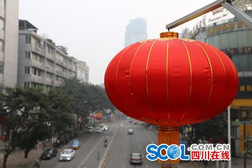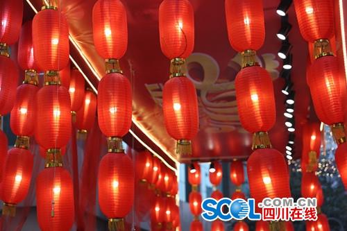 四川在线泸州消息(实习生 田雨 何流)新春临近,年味也越来越浓。今日上午,记者走访了泸州市各大商业街,大大小小的红灯笼、中国结、福字等已经挂满街头,众多年货小商品相继亮相。记者注意到,出街的市民也搭上了“中国年味”的快车,穿上了红衣服,围上红围巾,融入到喜气洋洋的年味气氛中。记者路过石马沟菜市场发现,数名工作人员正在悬挂火红的灯笼,放眼望去,一排排大红灯笼横跨整条大街,为酒城的街头增添了不少喜庆色彩。市民李先生说:“看到街道上挂起了这么多红灯笼,想到马上就要过年了,心里特别开心。”