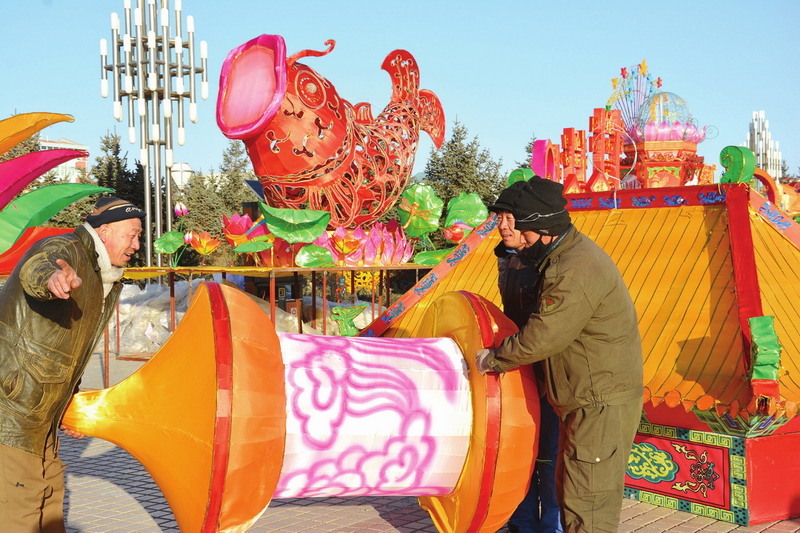 在新春来临之际,商都县祥和广场的大型灯展灯具正在紧锣密鼓安装调试中。充满祥和、平安、幸福元素的各式各样大型花灯相继亮相,增加了节日喜庆气氛。 特约记者 郭玉宽摄