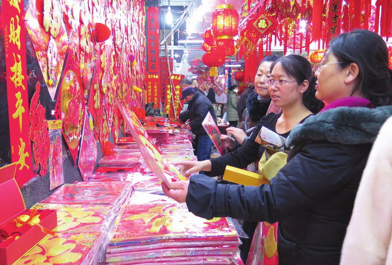 临近春节,我市年货市场,红红火火,各地的特产、干鲜食品、进口商品以及对联、灯笼、中国结等琳琅满目的节日商品吸引着市民前来购买。 首席摄影记者 由小强摄