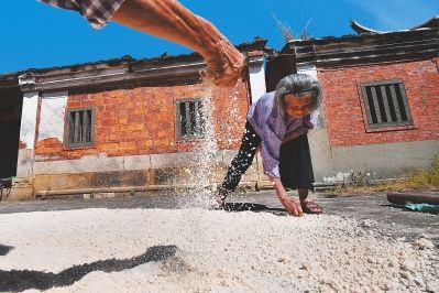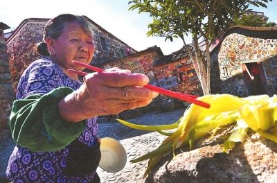 村民忙碌着制作地瓜粉,当地的原生态土特产备受游客青睐。