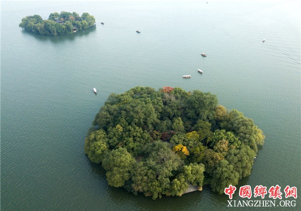 11月19日,游船在西湖湖心亭和阮公墩两座小岛间行驶。