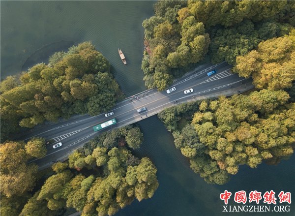 11月19日,车辆和游船在西湖隐秀桥附近行驶。