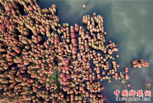 这是11月26日拍摄的浙江省余姚市梁弄镇四明湖畔的池杉林。 近日,余姚市四明湖畔的池杉颜色转红,成为冬日里的一抹亮色。 新华社发(张辉 摄) |