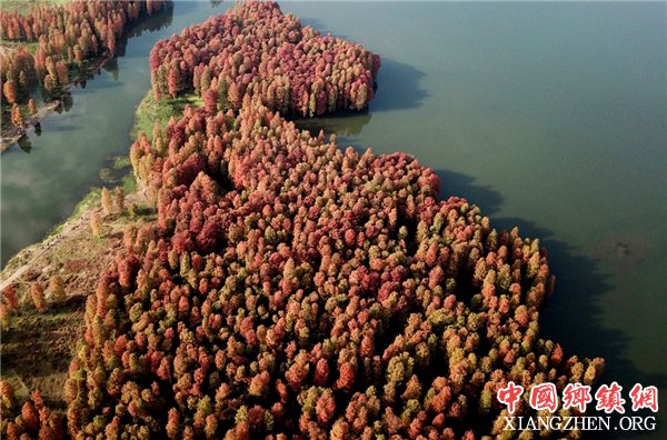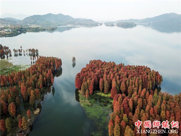 这是11月26日拍摄的浙江省余姚市梁弄镇四明湖畔的池杉林。