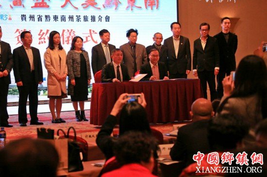 推介会上,通过播放《大美黔东南》、《因为你》等宣传片及精彩的民族歌舞展演,使参会嘉宾对黔东南州有了初步的了解,黔东南州旅游发展委员会副主任石虎及黔东南州农委总经济师石建东分别通过精美的图片,介绍了黔东南州的旅游资源和优质茶产品,推介过程赢得现场观众阵阵掌声。在王富玉主席、香港贵州商会、香港中小旅行社协会等嘉宾的见证下,黔东南州旅发委与香港中国旅行社签订旅游战略合作协议,黔东南州农委与宇利集团有限公司签订茶叶销售意向协议书。 与此同时,黔东南民族文化在尖沙咀维多利亚港惊艳登场,苗侗姑娘小伙展示了《侗族大歌》、《洪州琵琶歌》、《苗族飞歌》等吸引香港市民和来自全球的国际争相拍照,共同跳起团圆舞,香港国际都市文化与黔东南州民族文化在此相互交融。