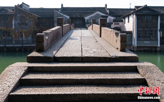 虽然已是入冬时节,但在江南水乡乌镇,金黄和深红的树叶、绿油油的荡漾碧波、白色的瓦房墙壁以及深色的屋檐构成了一幅幅多彩的冬季图画。图为12月5日,乌镇西栅景区内的冬季美景。中新网记者 李卿 摄