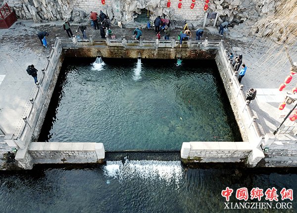 泉水喷涌的济南黑虎泉(2月11日摄,无人机拍摄)。 春节临近,位于山东济南市区的各处主要名泉地下水水位稳定,泉水充沛。 新华社记者 徐速绘 摄 |