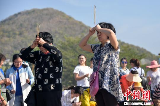 图为游客在南山文化旅游区内拜佛。 洪坚鹏 摄