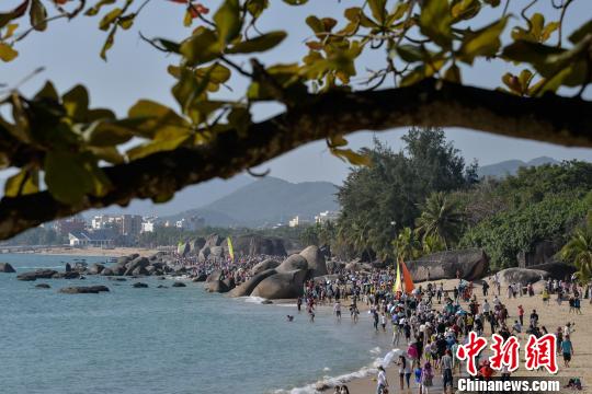 图为天涯海角景区游人如织。 洪坚鹏 摄 2月14日,位于海南岛南部的旅游城市三亚天清气爽,各大旅游景区景点迎来大量游客,呈井喷态势。 |