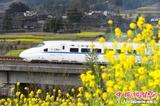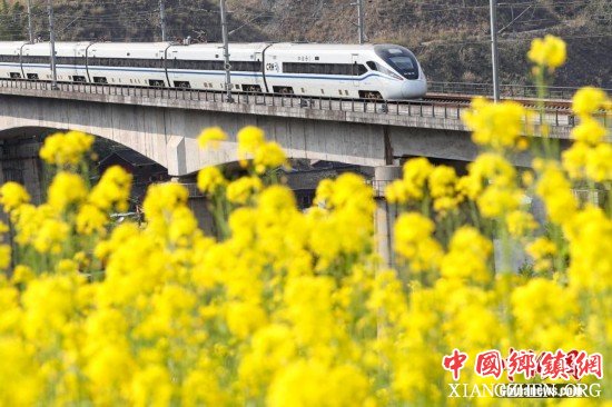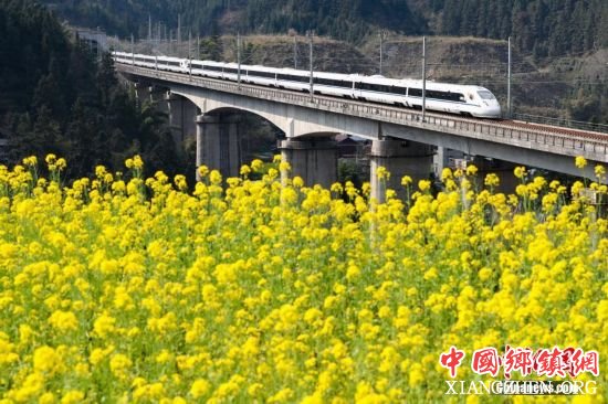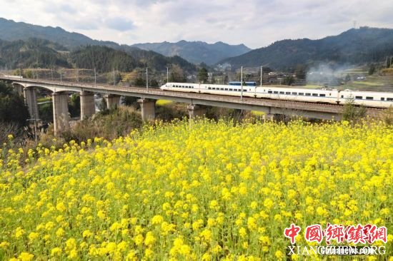 2月24日,一列贵广高铁列车在贵州榕江县平江镇加会村外的油菜花田旁驶过。随着气温回升,贵广高铁贵州省榕江县沿线的油菜花竞相绽放,处处春意盎然。中新社记者 贺俊怡 摄 |