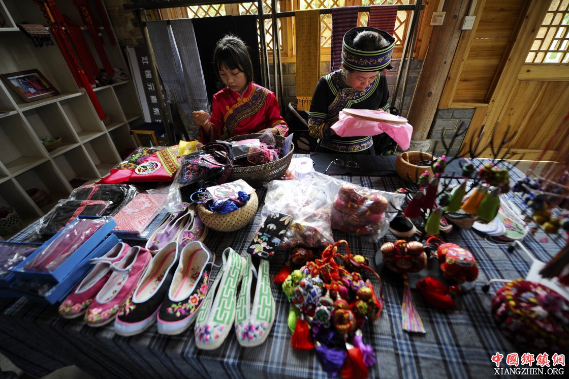10月27日,在广西南宁市青秀区南阳镇施厚村古岳坡,村民在制作壮锦文创产品。
