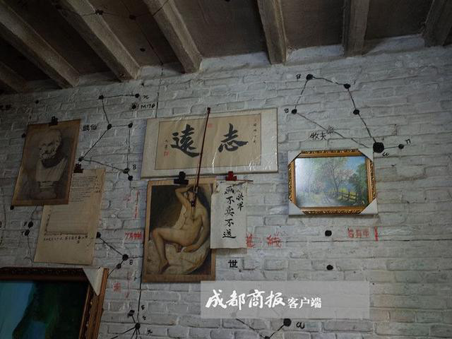 图为2016年8月17日,李婧磁家。 李铁军一家住在一楼,客厅墙壁和屋顶画着各种星座图,狮子、小熊一应俱全,几幅油画和石膏像挂着,还有一幅裸女画是李婧磁妈妈李安素所画,其他山水画则是李铁军的作品,一张“铁军画不卖不送”字条被虫蛀了几个窟窿,质地看起来很清脆,吊扇一吹就飘来飘去。靠窗的地方摆着一台电子琴,另一边书桌上摆着《人体解剖入门》《素描技法》《名家国画技法·古代仕女》等书,旁边墙壁上挂着一块小黑板,上面用粉笔字写着“知识就是力量”。和11年前相比,屋里并无太多变化,只是新增了笔记本电脑、WiFi和一笼共5只虎皮鹦鹉。