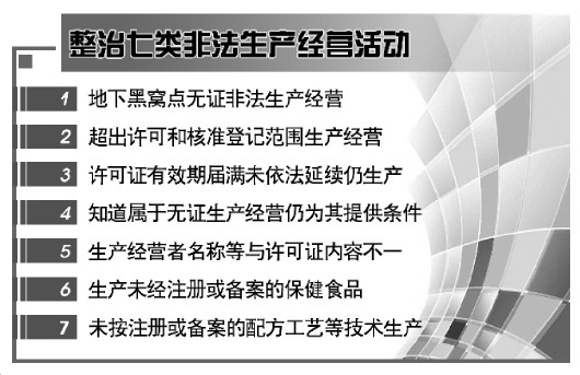 国家食药监总局官网今天发布通知,部署全国食品、保健食品欺诈和虚假宣传整治工作实施方案。通知明确,整治工作的目的是贯彻落实国务院食安办的两个文件精神以及全国食品、保健食品欺诈和虚假宣传整治电话会议的要求。 据记者了解,两个文件一是《国务院食品安全办等9部门关于印发食品、保健食品欺诈和虚假宣传整治方案的通知》,一是《国务院食品安全办关于进一步做好食品、保健食品欺诈和虚假宣传整治实施工作有关事项的通知》(以下简称《通知》)。 整合各方力量加强督促检查 《通知》要求,各地食药监管部门建立专门工作机构,统筹、协调本地区整治工作,整合食品和保健食品生产、经营、稽查、许可、抽检监测、法制、科技标准、新闻宣传等各方力量,明确职责分工和牵头部门,实施集中办公;建立会商会议、信息通报、督促检查等工作机制,及时解决问题,形成整治合力;落实专项整治人、财、物等保障工作。 《通知》明确要求各地要结合当地实际,制定本地区整治工作实施方案和督促检查方案,进一步细化整治重点和措施;采取实地检查、座谈约谈、通报曝光等方式,定期调度整治工作进展,确保取得实效。 将重点整治地下食品黑窝点 《通知》指出,治理的重点是未经许可生产经营食品和保健食品。主要包括以下七类:无证生产经营食品、保健食品,特别是地下黑窝点非法生产经营;超出许可和核准登记的经营范围从事食品、保健食品生产经营活动;许可证有效期届满未依法延续,仍从事生产经营活动;知道或应当知道属于无证生产经营,仍为其提供生产经营场所、运输、保管、仓储等条件;生产经营者名称、社会信用代码(个体生产经营者)、法定代表人(负责人)等与许可内容不一致;生产未经注册或备案的保健食品,擅自转让、伪造、涂改、倒卖、出租、出借注册证书等;未按注册或备案的产品配方、生产工艺等技术要求生产保健食品。 标签说明书须真实不得虚假 除上述七种行为外,《通知》还将标签虚假标识行为列为打击重点。 《通知》要求:食品的标签、说明书,不得含有虚假内容,不得涉及疾病预防、治疗功能。非保健食品的标签不得明示或者暗示具有保健功能。 保健食品的标签、说明书不得涉及疾病预防、治疗功能,内容应当真实,与注册或者备案的内容相一致,载明适宜人群、不适宜人群、功效成分或者标志性成分及其含量等,并声明“本品不能代替药物”。保健食品的功能和成分应当与标签、说明书相一致。 要求食品和保健食品广告的内容应当真实合法,不得含有虚假内容,不得涉及疾病预防、治疗功能。保健食品还应当声明“本品不能代替药物”。 同时,食品、保健食品的广告、宣传册、音频视频、会议讲座的内容,都不得偏离标签、说明书标示的内容,严禁涉及疾病预防、治疗功能。 强调网络第三方平台责任 《通知》对网络违法销售、电话欺诈销售食品和保健食品的行为坚决说不。《通知》明确要求,各地食药监管理部门要把利用网络、会议营销、电视购物、直销、电话营销等方式违法营销宣传、欺诈销售食品和保健食品行为列为治理范围。具体包括五种情况: 一是未落实经营许可要求行为。未依法取得许可销售食品、保健食品,未按照许可的经营项目范围从事食品、保健食品经营;通过第三方平台和自建网站交易的食品、保健食品经营者,未在其经营活动主页面显著位置公示其《食品经营许可证》。 二是网络和第三方平台违法违规经营行为。网上刊载的食品和保健食品名称、成分或者配料表、产地、保质期等信息与食品标签不一致;网上刊载的婴幼儿配方乳粉产品信息明示或者暗示具有益智等功能或者保健作用;对在贮存、运输、食用等方面有特殊要求的食品,未在网上刊载的食品信息中予以说明和提示;特殊医学用途配方食品中特定全营养配方食品进行网络交易。 三是网络食品交易第三方平台未落实管理责任行为。第三方平台提供者未建立入网食品生产经营者审查登记、食品安全自查、食品安全违法行为制止及报告、严重违法行为平台服务停止、食品安全投诉举报处理等制度。 四是非实体店未落实许可要求行为。未取得经营许可资质以会议营销、电视购物、电话营销等形式销售食品、保健食品;在许可注册的场所以外经营食品、保健食品。 五是非实体店未落实管理责任行为。媒体、宾馆、会场等第三方平台运营商未审查入场食品经营者的食品经营项目;未定期对入场食品经营者的经营环境、经营条件、经营行为和宣传活动进行检查。 严禁违法发布虚假食品广告 《通知》再次强调对违法虚假食品和保健食品广告的打击力度。食品和保健食品广告未经审查不得发布。未经审查批准擅自发布保健食品广告,或者发布虚假违法食品、保健食品广告,将受到严厉打击。 主要包括:食品生产经营者未经审查发布保健食品广告;食品生产经营者发布虚假违法食品、保健食品广告;食品生产经营者擅自修改广告内容,与批准的广告内容不一致。 国家食药监总局要求各地在摸底抽查、抽检监测的基础上加强案件查处。《通知》要求制定翔实的摸底排查计划、工作报表和台账等,确保信息准、底数清、情况明。 抽检监测要各有侧重,分筹备启动、抽样检验和总结上报三个阶段开展抽检监测工作。重