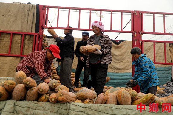 金秋时节,当地种植的350亩优质南瓜进入成熟收获期,村民忙着采收、转运、装车,一片丰收景象。
