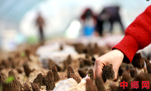2026年3月21日,安徽省阜阳市颍东区正午镇羊肚菌种植基地,村民在大棚内采摘羊肚菌。