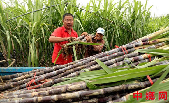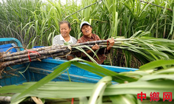 2025年10月7日,安徽省阜阳市颍东区冉庙乡梧樟村,村民正忙着采收装运甘蔗,一派喜人的丰收景象。