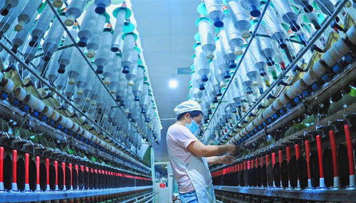1月18日,江苏省连云港市海州区一家纺织企业工人在生产线上工作。 国家统计局1月18日发布数据,2017年我国国内生产总值(GDP)827122亿元,首次突破80万亿元大关。按可比价格计算,GDP比上年增长6.9%,增速比上年提高0.2个百分点,这也是我国经济年度增速自2011年下行以来的首次回升。 新华社发(耿玉和 摄) |