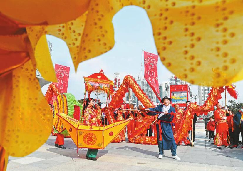 2月15日,德阳市旌阳区举行“我们的节日·欢乐过元宵”传统文化系列展示活动。图为采莲船表演。四川日报全媒体记者 肖雨杨 摄 正月十五闹元宵,有了这场热闹,年才画上一个圆满的句号。