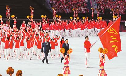 全运会四川省体育代表团入场。四川日报全媒体记者 华小峰 摄 竞技比赛项目中 899名运动员角逐30个大项 285个小项 群众比赛项目中 688名运动员角逐22个大项 116个小项 11月9日晚,第十五届全运会开幕式在广东奥林匹克体育中心举行。本届全运会,四川省体育代表团共有1587名运动员参赛。 经过本届全运会周期系统备战,四川省体育代表团共有1587名运动员进入决赛阶段。其中,竞技比赛项目中,899名运动员在30个大项、285个小项中成功出线;群众比赛项目中,688名运动员在22个大项、116个小项中顺利出线。四川体育在竞技项目和群众项目中形成全面突破的良好局面。 在899名参加竞技比赛项目的运动员中,“00后”甚至“05后”已挑起四川体育的重担。其中,滑板运动员宋昂媞年仅9岁。在本届全运会滑板项目资格赛中,宋昂媞以沉稳表现和高难度动作晋级决赛阶段,凸显了四川省体育代表团的年轻化趋势。 本届全运会开幕式举行前,四川省体育代表团在竞技比赛项目中已有金牌入账。魏天旺在自由式小轮车比赛中获男子组金牌,他的队友海洋获银牌。这是四川省体育代表团连续两届全运会包揽该项目金银牌。魏天旺获得的这枚金牌,是四川省体育代表团在本届全运会竞技比赛项目的首金。在前期已结束的群众比赛项目中,四川省体育代表团已获得8金17银13铜,奖牌总数38枚;展演项目已获得5个二等奖、7个三等奖。