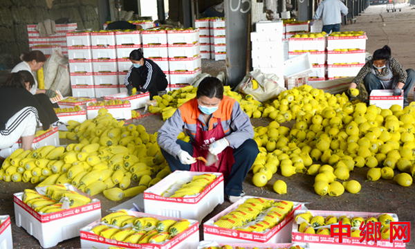 4月17日,河南省内黄县果蔬城瓜果市场冯江涛正在组织钟点工熟练地给甜瓜套上网套、装筐打包。 今年,全县种植的6万亩大棚甜瓜喜获丰收,助力乡村振兴。(文章来源:河南省内黄县县委组织部办公室 翟书生)