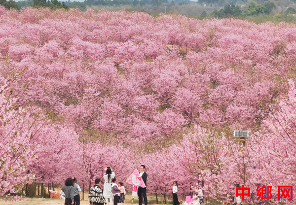 男女老少举着手机拍照、拍抖音,欢声笑语在山谷间回荡,处处是惬意与欢喜。这里虽是小众打卡地,却胜却无数知名景点。清新的空气沁人心脾,灿烂的樱花治愈人心。路边凉粉、烤肠的香气扑鼻,农舍饭馆挂着红灯笼,将诗意与烟火完美相融。