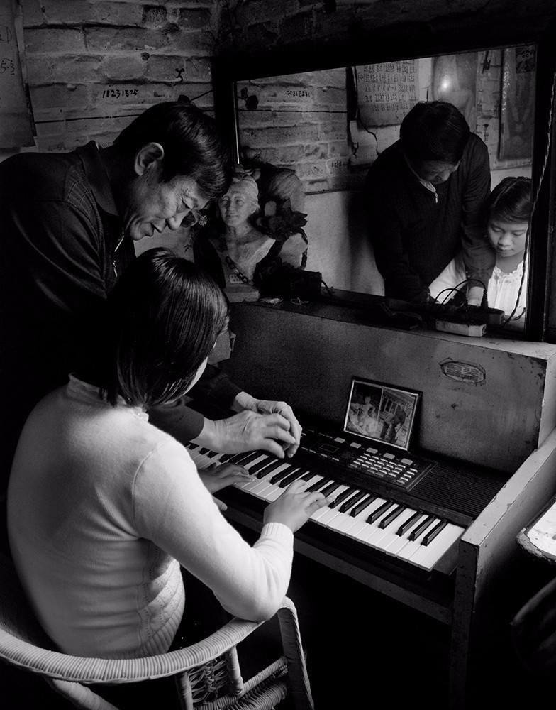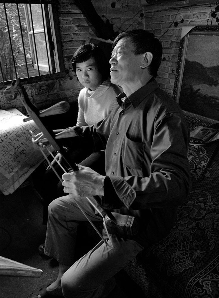 图为2016年8月17日,李铁军父女学音乐。 从泸州市纳溪城区的一条窄巷进入,向着长江方向步行约两公里,就到了李铁军和女儿居住的地方——中国化学工程第七建筑公司退休职工宿舍,被纳溪人称为“下七化建”。小区里古木参天,共有四栋青砖楼房。如今四周都是新小区,这些建于上世纪70年代的楼房,相比之下显得有些破旧。小区居民都是上了年纪的人,整个小区显得十分安静。