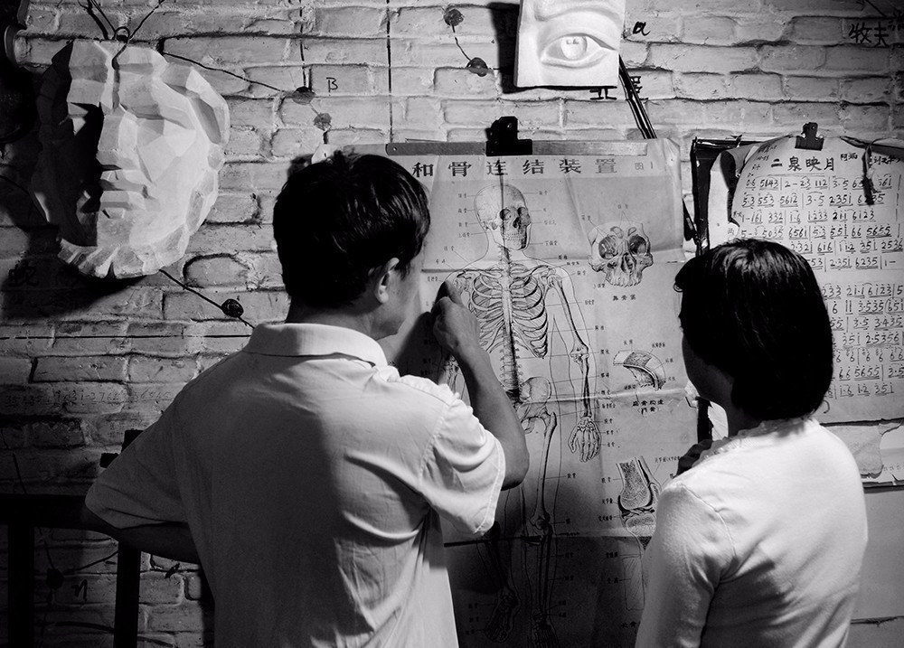图为2016年8月17日,李婧磁家。 李铁军一家住在一楼,客厅墙壁和屋顶画着各种星座图,狮子、小熊一应俱全,几幅油画和石膏像挂着,还有一幅裸女画是李婧磁妈妈李安素所画,其他山水画则是李铁军的作品,一张“铁军画不卖不送”字条被虫蛀了几个窟窿,质地看起来很清脆,吊扇一吹就飘来飘去。靠窗的地方摆着一台电子琴,另一边书桌上摆着《人体解剖入门》《素描技法》《名家国画技法·古代仕女》等书,旁边墙壁上挂着一块小黑板,上面用粉笔字写着“知识就是力量”。和11年前相比,屋里并无太多变化,只是新增了笔记本电脑、WiFi和一笼共5只虎皮鹦鹉。
