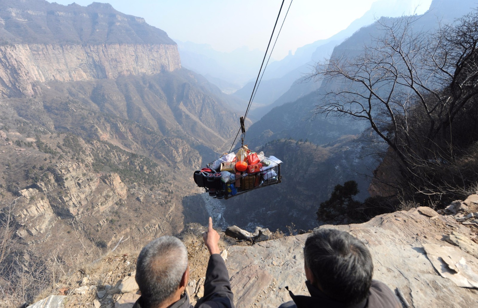2017年2月12日,山西晋城。“抱犊村真难走,猴子过来都发愁”这是流传于山西省晋城市陵川县古郊乡的一句谚语。抱犊村,一个只有9户人家的小村落,这里是山西省唯一一个不通公路的村庄。要进入村庄需要跋山涉水徒步4小时才能到达,而村民的生活所需均需依靠悬崖边的一根钢索从山下吊运,山路艰险的抱犊村吸引了国内外广大户外运动爱好者的青睐,近年来生意爆棚的农家乐也让村民们的腰包鼓了起来。